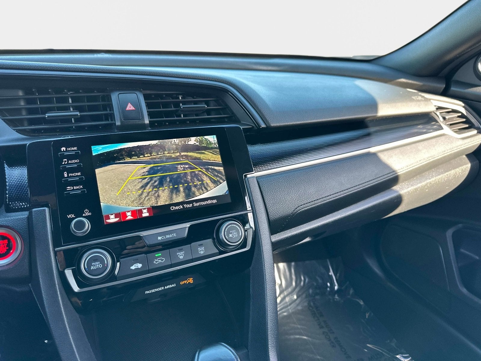 Black w/Cloth Seat Trim, 18" Alloy Wheels, 4-Wheel Disc Brakes, 8 Speakers, ABS brakes, Adaptive Cruise Control: Adaptive Cruise Control (ACC) with Low-Speed Follow, Air Conditioning, AM/FM radio, Apple CarPlay/Android Auto, Auto High-beam Headlights, Automatic temperature control, Brake assist, Bumpers: body-color, Delay-off headlights, Driver door bin, Driver vanity mirror, Dual front impact airbags, Dual front side impact airbags, Electronic Stability Control, Emergency communication system: HondaLink, Exterior Parking Camera Rear, Fabric Seating Surfaces, Forward collision: Collision Mitigation Braking System (CMBS) + FCW mitigation, Four wheel independent suspension, Front anti-roll bar, Front Bucket Seats, Front Center Armrest, Front fog lights, Front reading lights, Fully automatic headlights, Illuminated entry, Lane departure: Lane Keeping Assist System (LKAS) active, Leather Shift Knob, Low tire pressure warning, Occupant sensing airbag, Outside temperature display, Overhead airbag, Panic alarm, Passenger door bin, Passenger vanity mirror, Power door mirrors, Power steering, Power windows, Radio data system, Radio: 180-Watt Audio System w/8 Speakers, Rear anti-roll bar, Rear seat center armrest, Rear window defroster, Rear window wiper, Remote keyless entry, Security system, Speed control, Speed-sensing steering, Split folding rear seat, Spoiler, Steering wheel mounted audio controls, Tachometer, Telescoping steering wheel, Tilt steering wheel, Traction control, Trip computer, Black w/Cloth Seat Trim.
