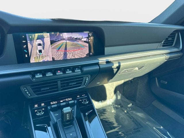 Equipment includes adaptive cruise control, surround view with active parking support, ventilated seats, adaptive sport seats with memory, heated GT Sport steering wheel, high-gloss black exterior trim, painted wheels, and under-door puddle light projectors. This 992.2 Carrera S also features the updated exterior lighting signature, upgraded infotainment system, and revised driver-assistance suite for 2025.